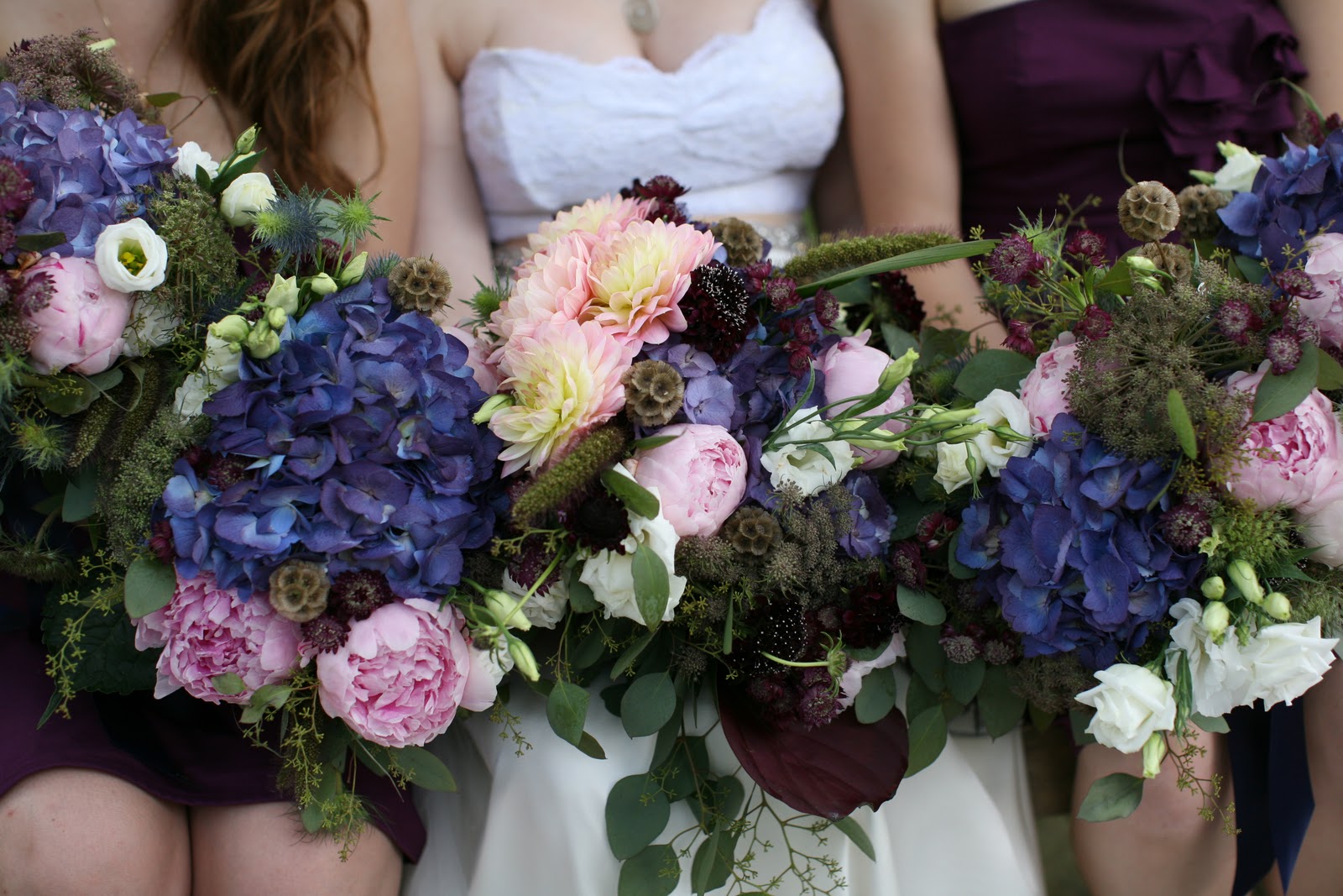 So many beautful elements, dahlia, scabiosa pods and flowers, peonies, thistle, millet, chocolate lace, seeded eucalyptus, lisianthus, astrantum, hydrangea and garden roses. Swoon!